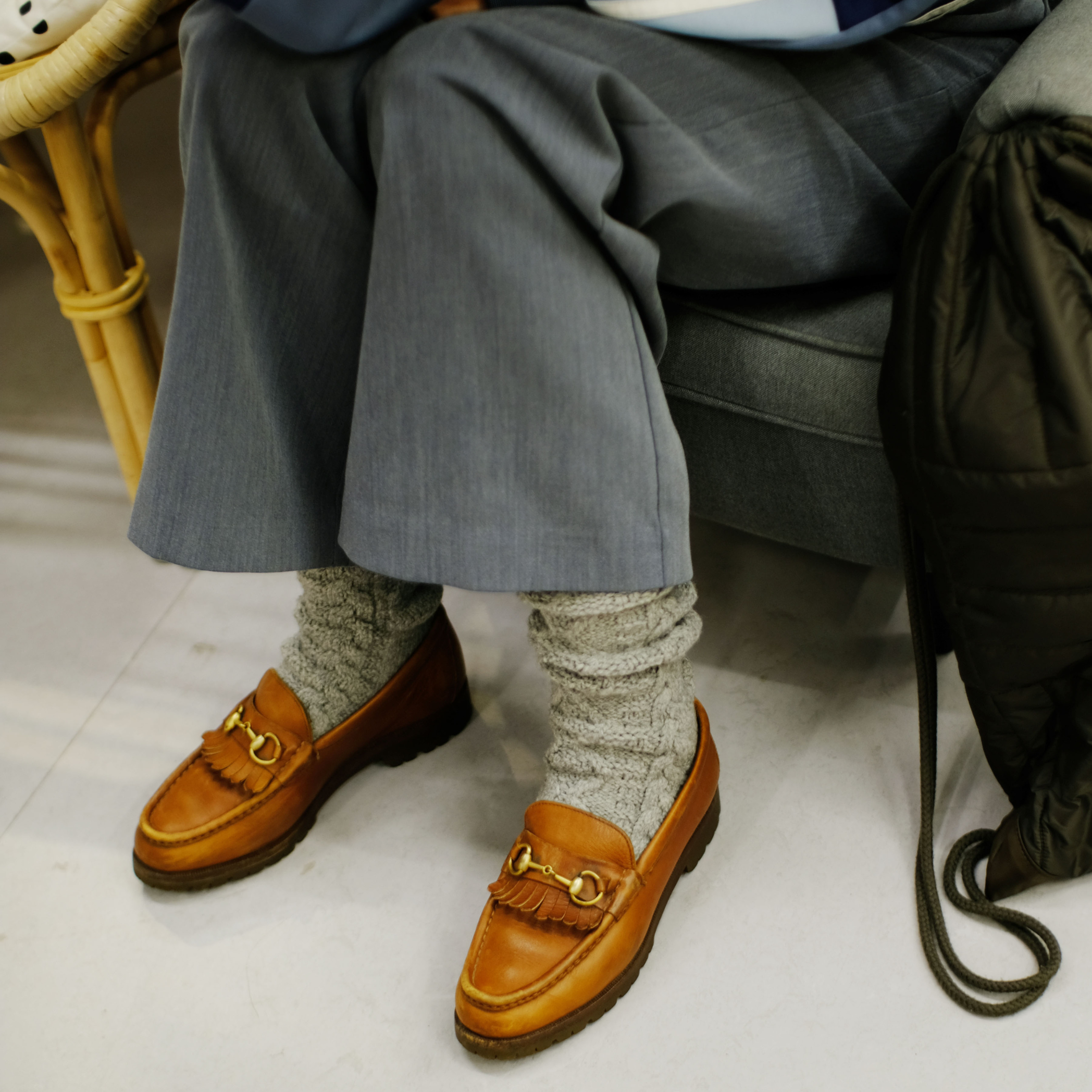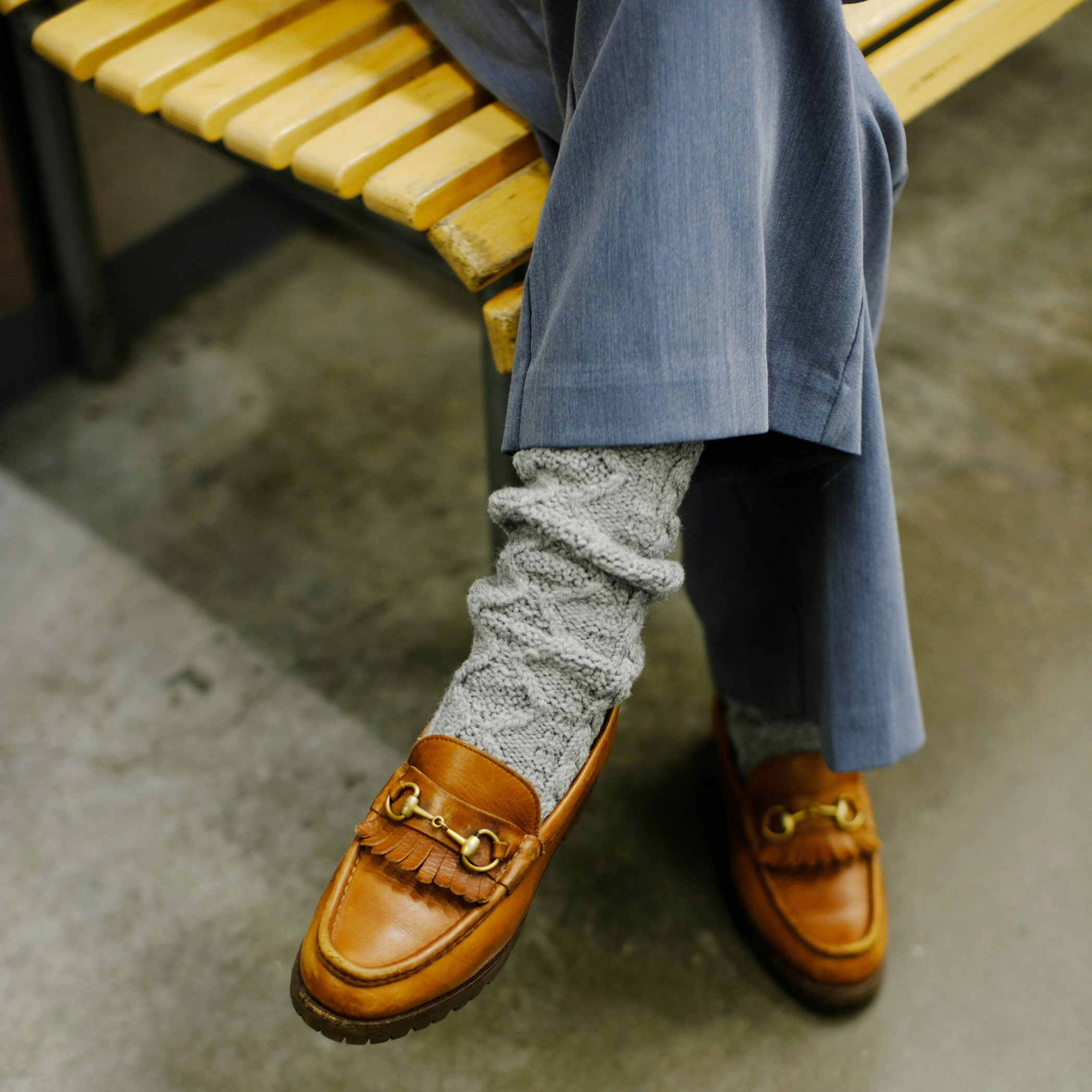 These socks are similar to Aran knits and are made from French Merino wool, which is obtained from Merino sheep raised in the south of France. Compared to wool from other countries and regions, they are characterized by their fluffy, chewy elasticity. The three-dimensional cable pattern and crisp texture are unique and can only be expressed thanks to the material.