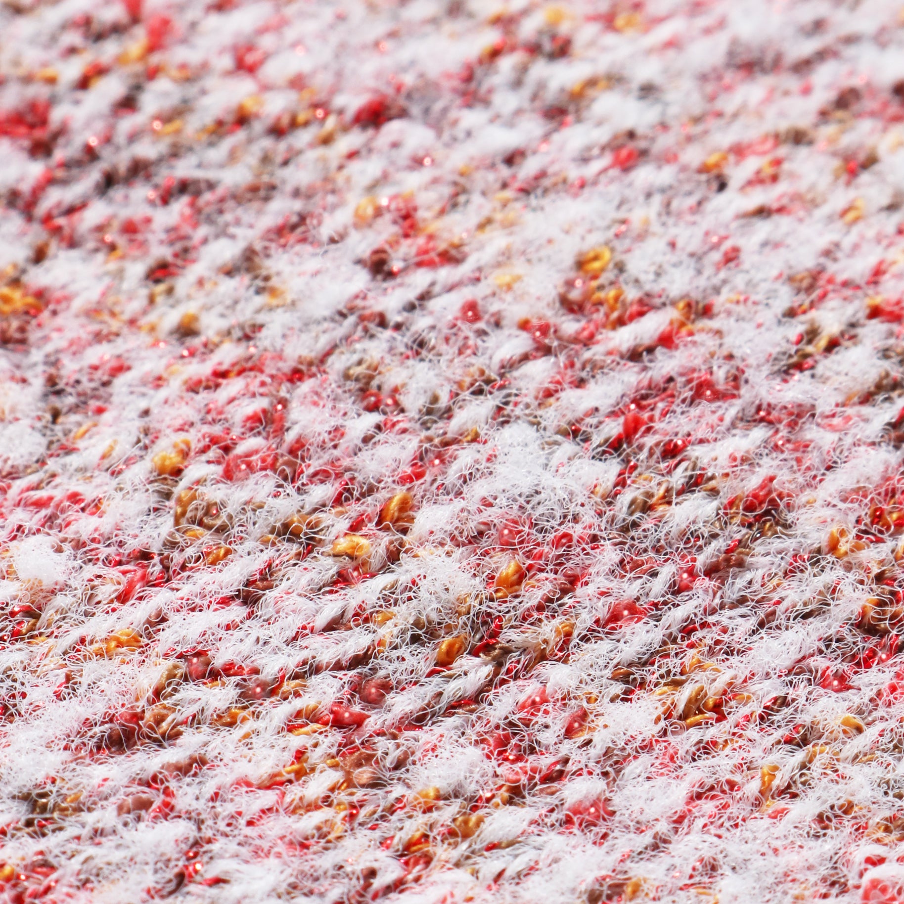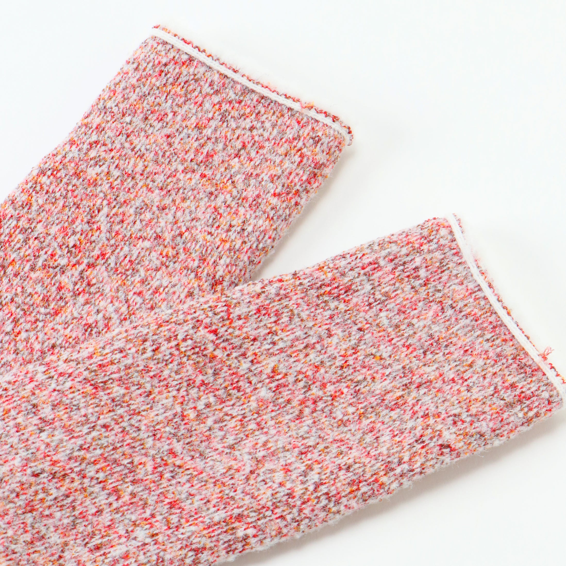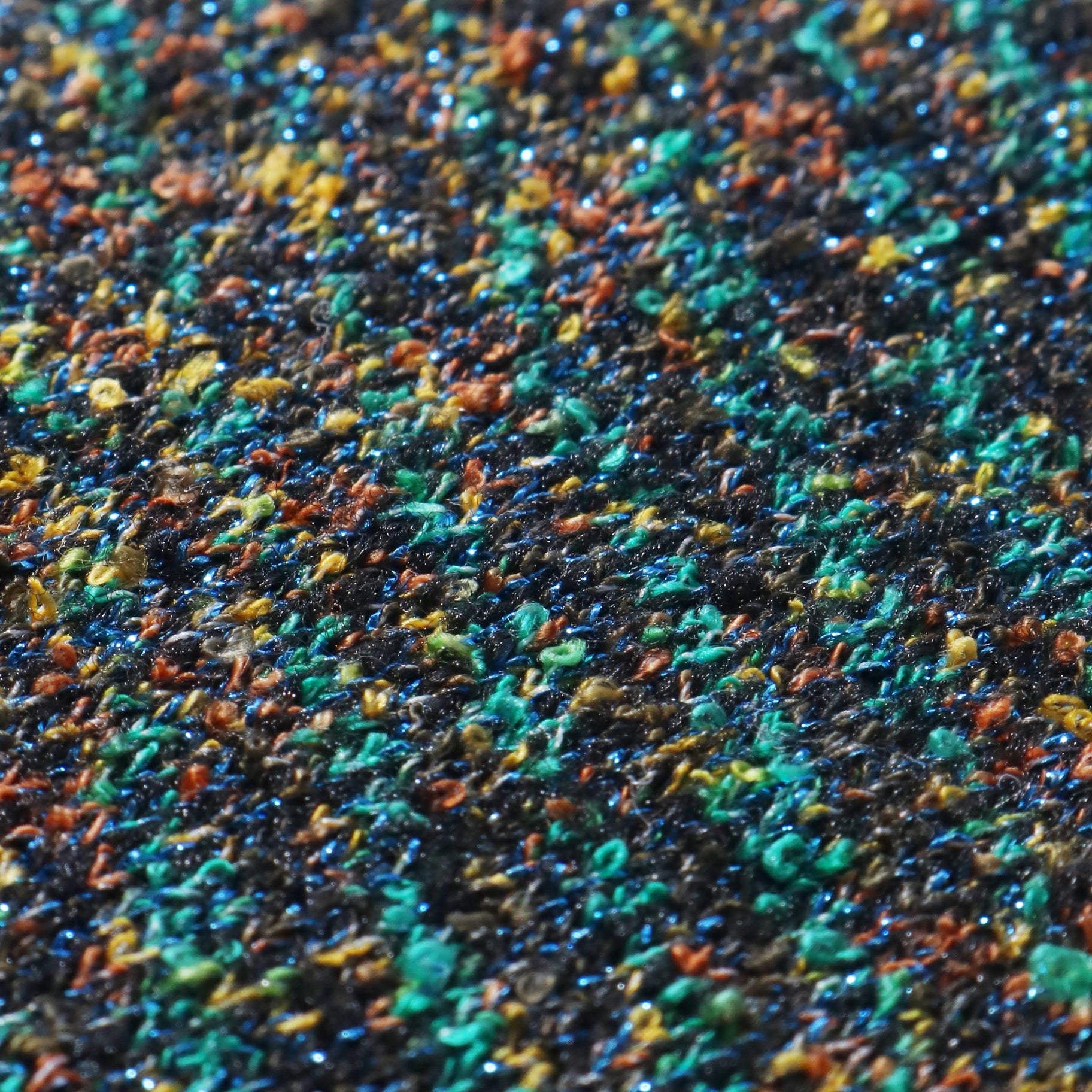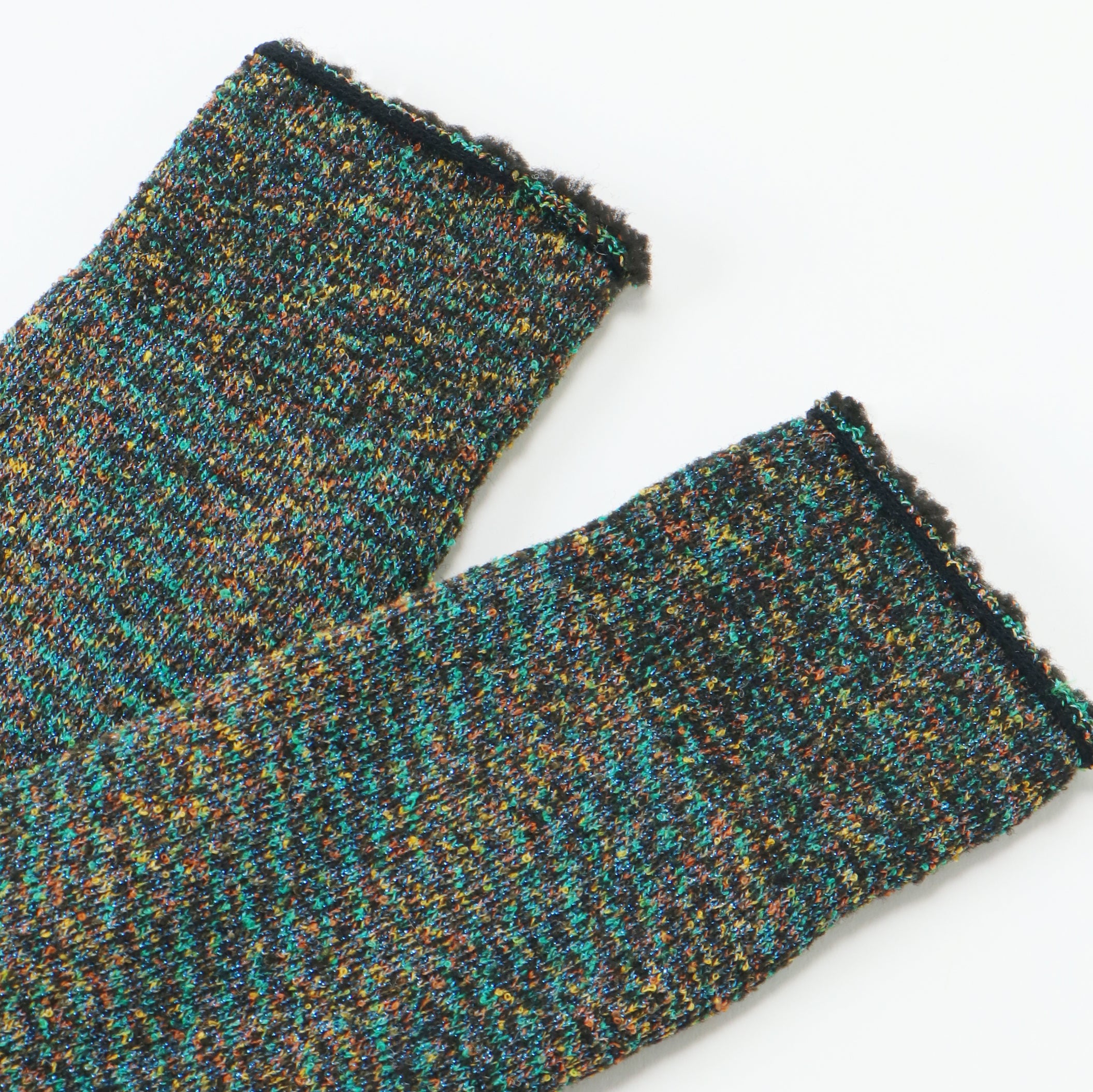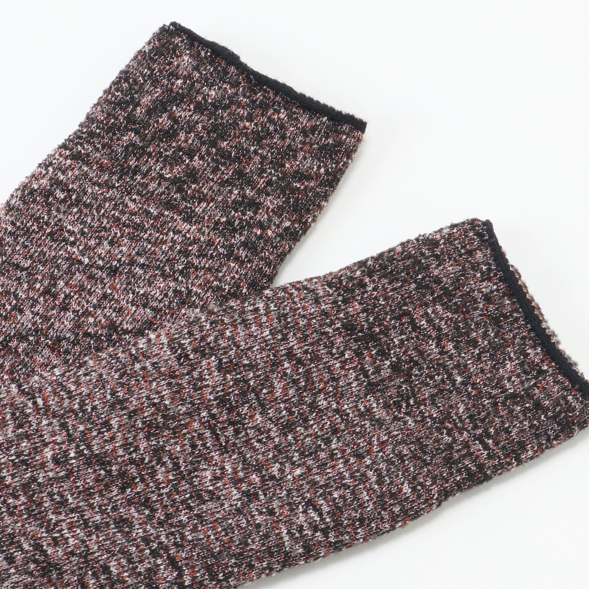 肌側はおなじみのボアフリースのようなふくらみある編み構造。表側には、きらきらと光るラメ糸と、HOiSUMオリジナルのグラデーション糸を使用しました。